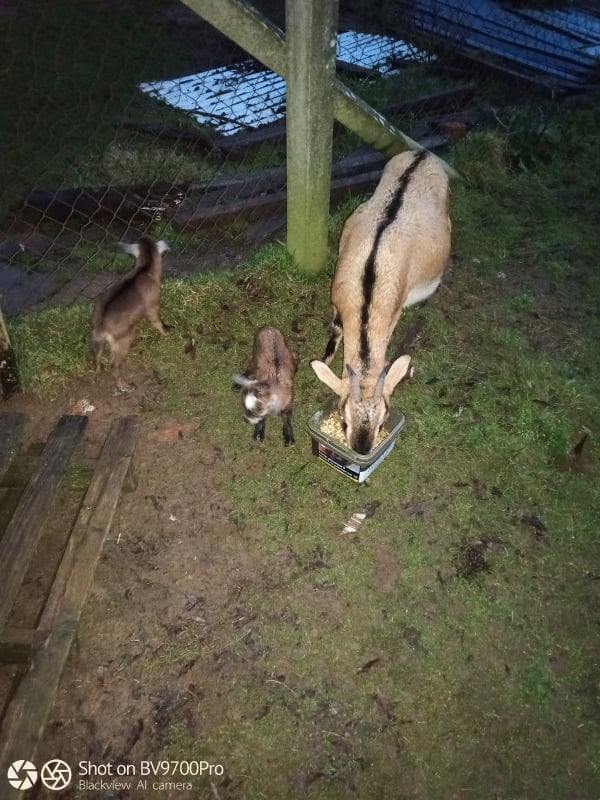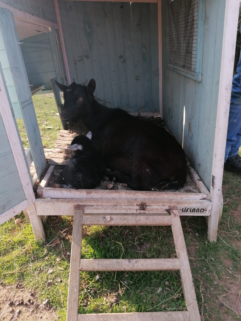 Ensuite sont arrivése les chèvres naines, deux mâles (père et fils) que l'on a baptisé Satan et Tyrion, puis les femelles ( Curry, Cersei et Nesquik) qui ont eu beaucoup de petits !! Nesquik a eu Caramel, Curry a eu Pepper et Canelle puis Prune et Prunelle.