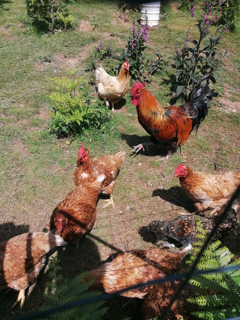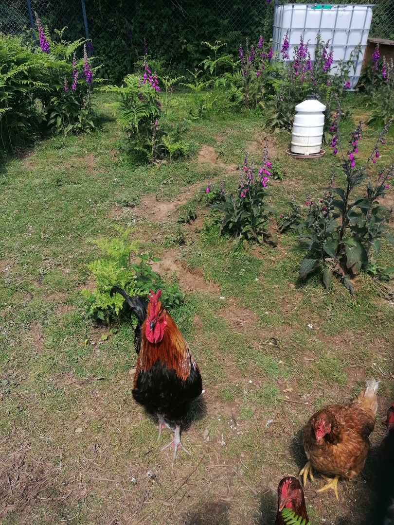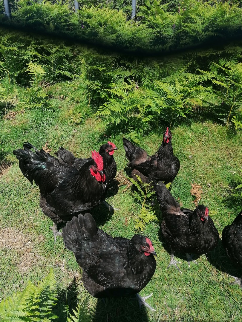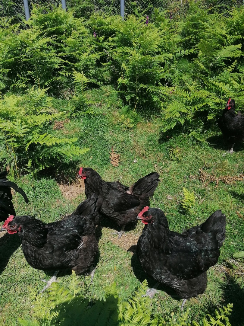 Sont arrivés en mêmes temps nos premières poules pondeuses, des poules rousses. Nous avons achété une couveuse afin de partir sur un élévage de race cotentine. Quelques mois plus tard sont arrivés nos premières poules et Coq de race Cotentine