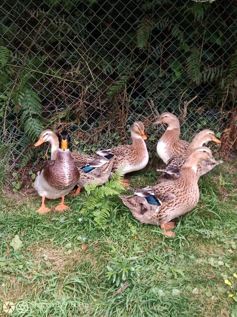 Commençant à nous intérésser aux races normandes, nous découvrons les Canards de Rouen. Quelques semaines plus tard nous trouvons un éléveur qui nous vends 1 males et 5 femelles. Beaucoup plus gros que les colverts, ils ne volent pas.