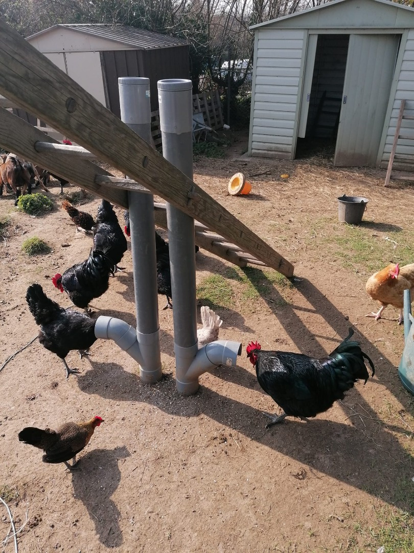 Les poulaillers sont DIY avec mangeoire autonome (merci papy nounn) qui permet de tenir quelques jours en nourriture et surtout éviter la nourriture sur le sol qui attire les rats. Des tubes en PVC, Y et coudes suffisent pour réaliser ces mangeoires => https://www.youtube.com/watch?v=ZmmOH8l4Fbw