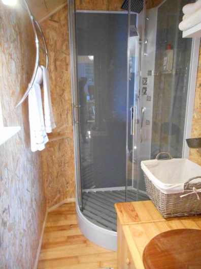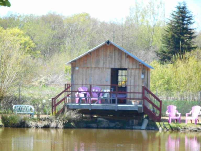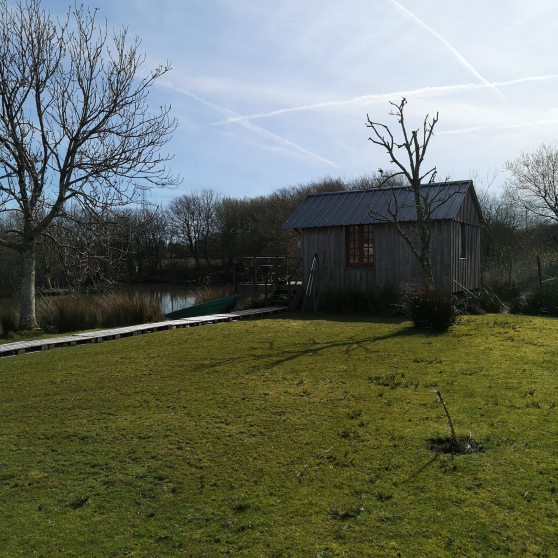 La cabane est composée d'un coin couchage avec un lit deux places, d'une petite salle d'eau avec toilettes sèches et douche, d'un petit coin cuisine. Les draps, serviettes de bain sont fournis. Kayaks, barbecue disponibles sur place. Pêche dans l'étang interdite.